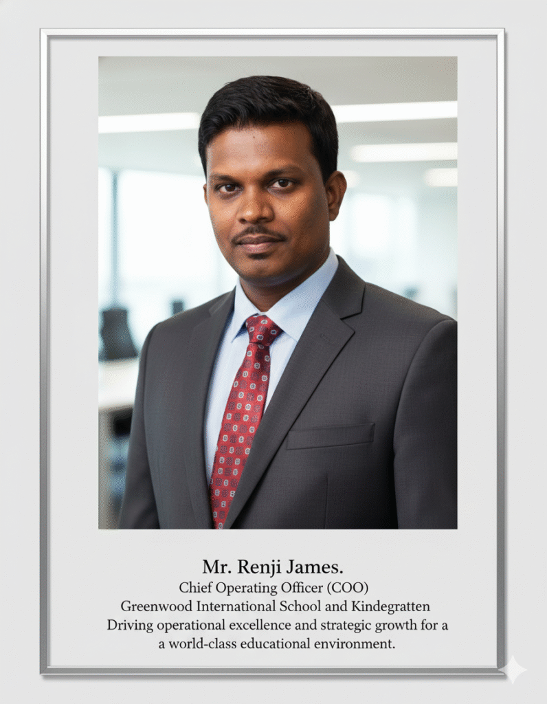 Mr. Renji James serves as the Chief Operating Officer (COO) of Greenwood International School and Kindergarten, driving the core operational excellence and strategic growth necessary to support a world-class educational environment for both school and kindergarten levels.